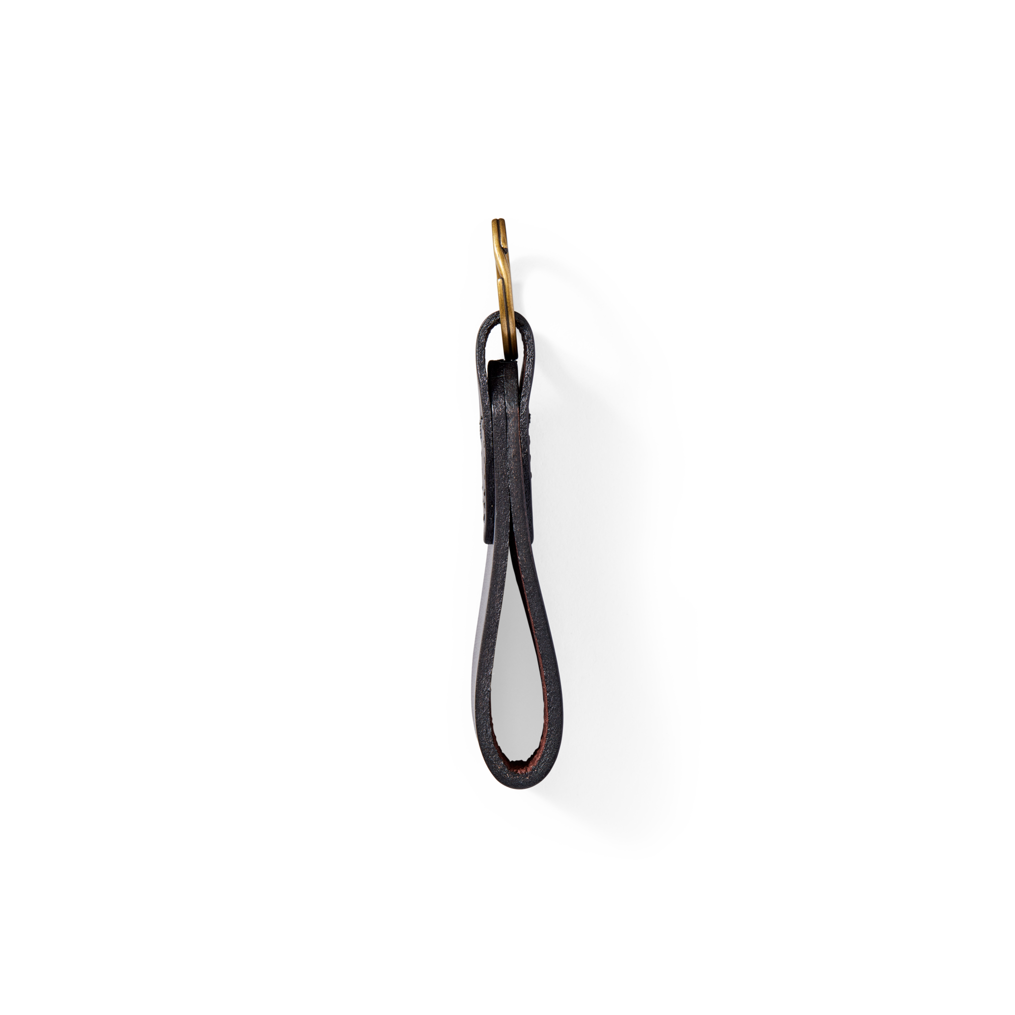 A Bridle Leather key chain made in the USA with vegetable-tanned leather and Filson-branded brass hardware.